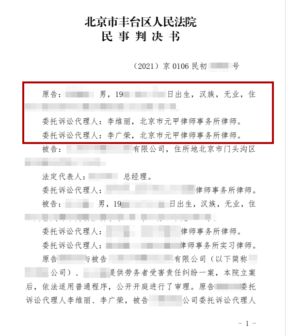 案例来源:北京市元甲律师事务所,以上为元甲律所办理过的真实案例,为确保个人和商业隐私,文中所有人物的名字均使用化名。