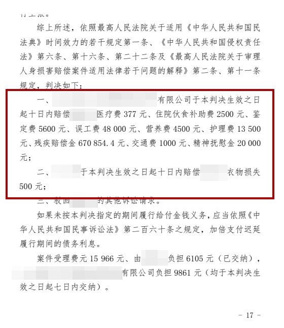 再次开庭后,经过开庭律师的据理力争,最终法院判决被告连带承担全部的赔偿责任,且支持按照北京城镇标准计算伤残赔偿金和被扶养人生活费,周先生对判决结果非常满意,并特意打来电话表示衷心感谢!