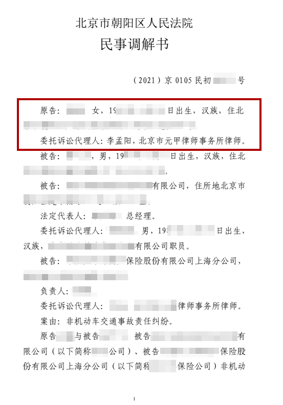 1、委托人自行与被告方沟通困难重重,委托元甲律师后,抽丝剥茧,顺利拿到赔偿。
