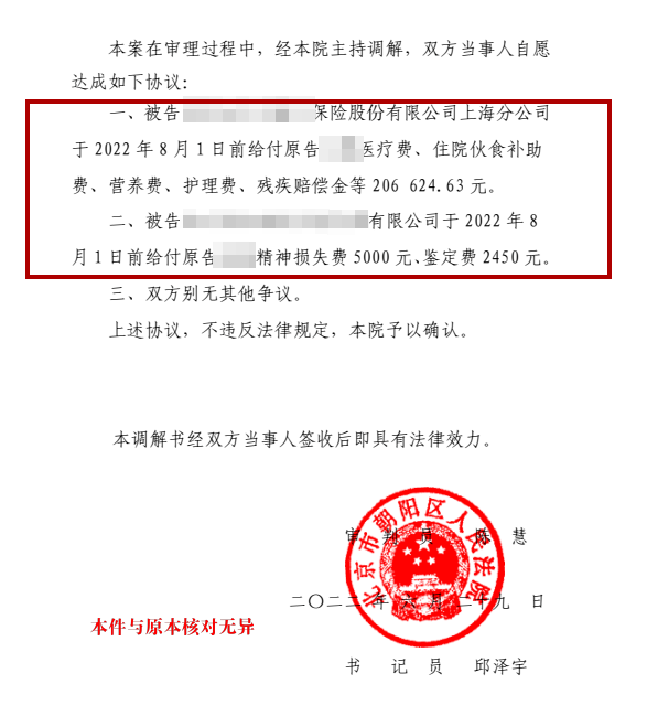 2、案件当庭调解,加快了拿到赔偿款的时间。