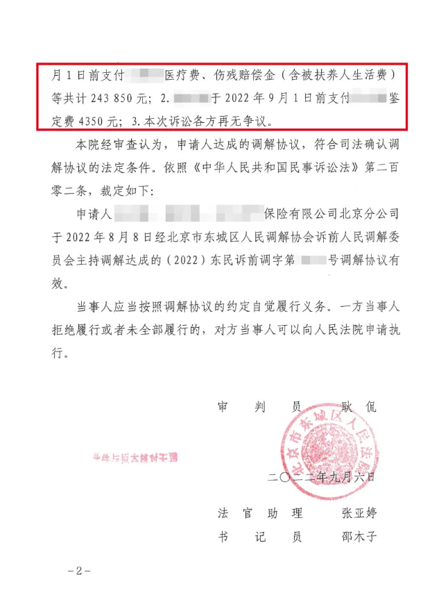 最终元甲通过扎实的证据准备、有理有据的诉讼主张,帮助郭女士在诉前调解阶段争取到了近25万元的赔偿款,这其中残疾赔偿金16万余元(含被扶养人生活费10万余元)、误工费31500元。