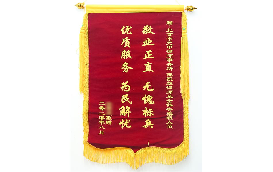 2020年9月30日,收到委托人王女士送来的第3108、3109面锦旗。
