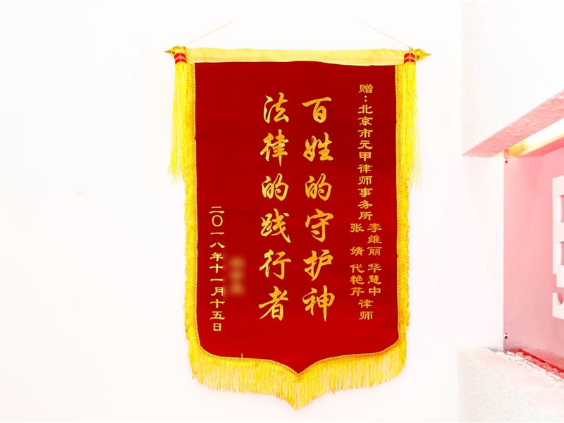 后经过比较后委托元甲律师事务所,杨先生的伤情后经鉴定构成十级伤残。在元甲律师团队和受害人的共同努力下,获得28万余元赔偿,让杨先生及家人感到十分满意,特送锦旗一面锦旗,以表感谢。