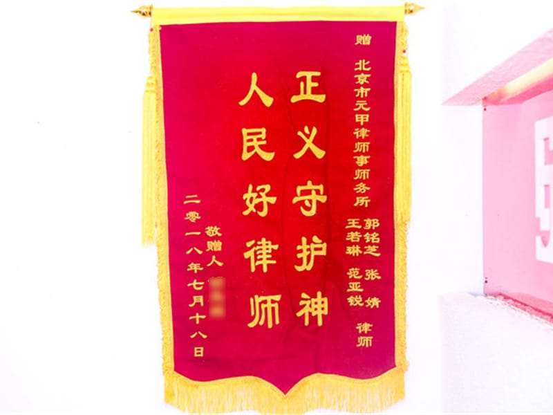 元甲律师事务所律师快速梳理案情,五日内立案,仅在委托一个半后就拿到判决,二十多万的赔偿款让胡女士及家人非常满意,特送锦旗表示感谢。