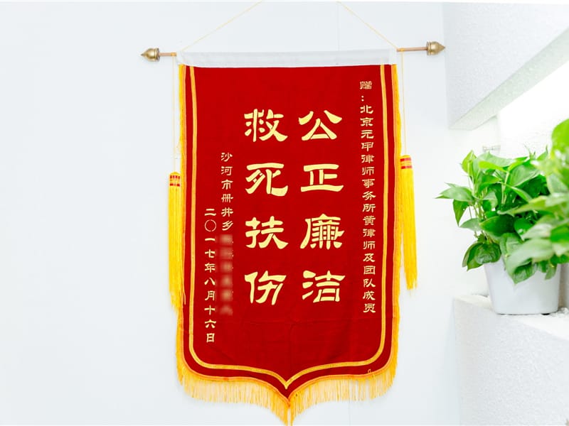 为了表示感谢,陈先生和家属特意从老家赶到元甲律所送上锦旗。