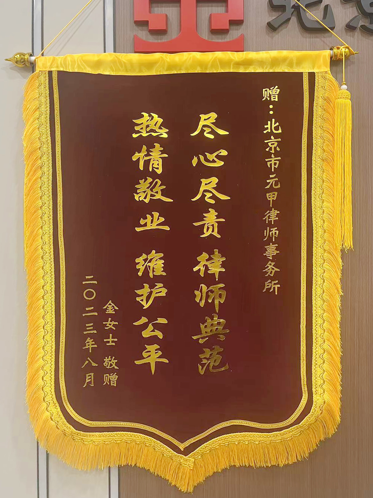 金女士对元甲律所的办案结果非常满意,不仅为她争取了最大权益,还在心理上给予了专业疏导,让她有勇气面对未来生活,金女士特意送来一面锦旗表达谢意!