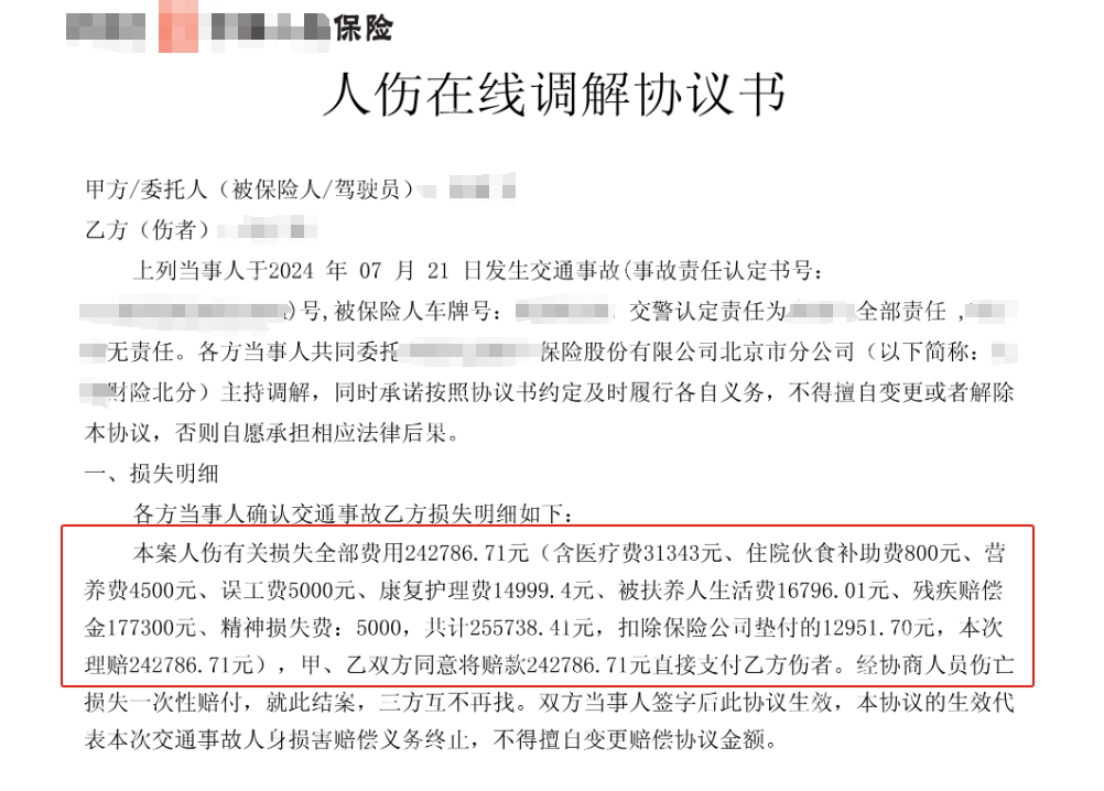 2、当事人权益最大化:伤者十级伤残,免鉴定获赔24万元赔偿款!