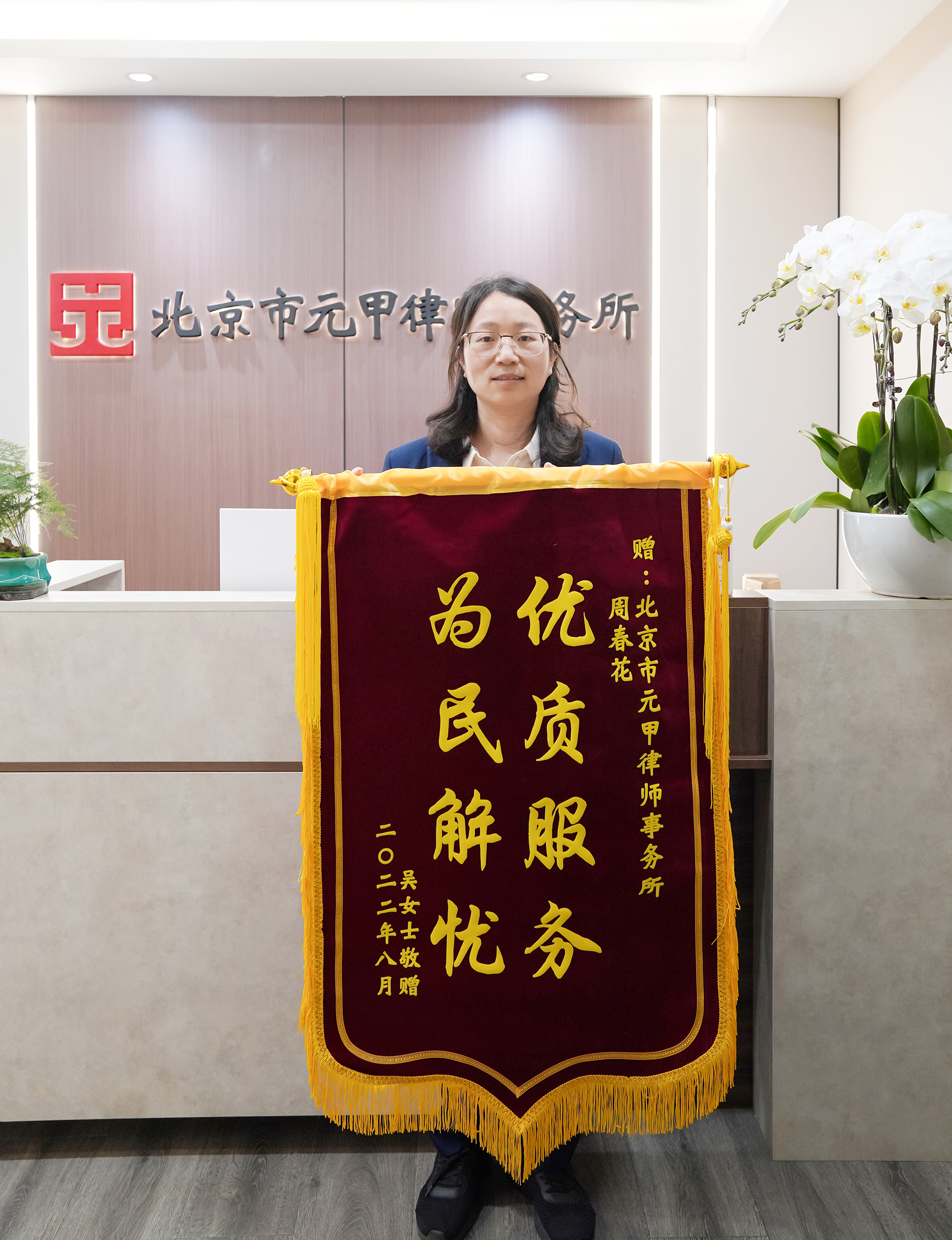 历时10个月的一审二审之路,元甲婚姻家事团队一直暖心陪伴在吴女士身边,常常帮助、总是安慰,陪伴她走过人生的低谷。吴女士对于元甲律师专业能力非常敬佩,对口碑服务也十分满意,送来锦旗表示感谢!