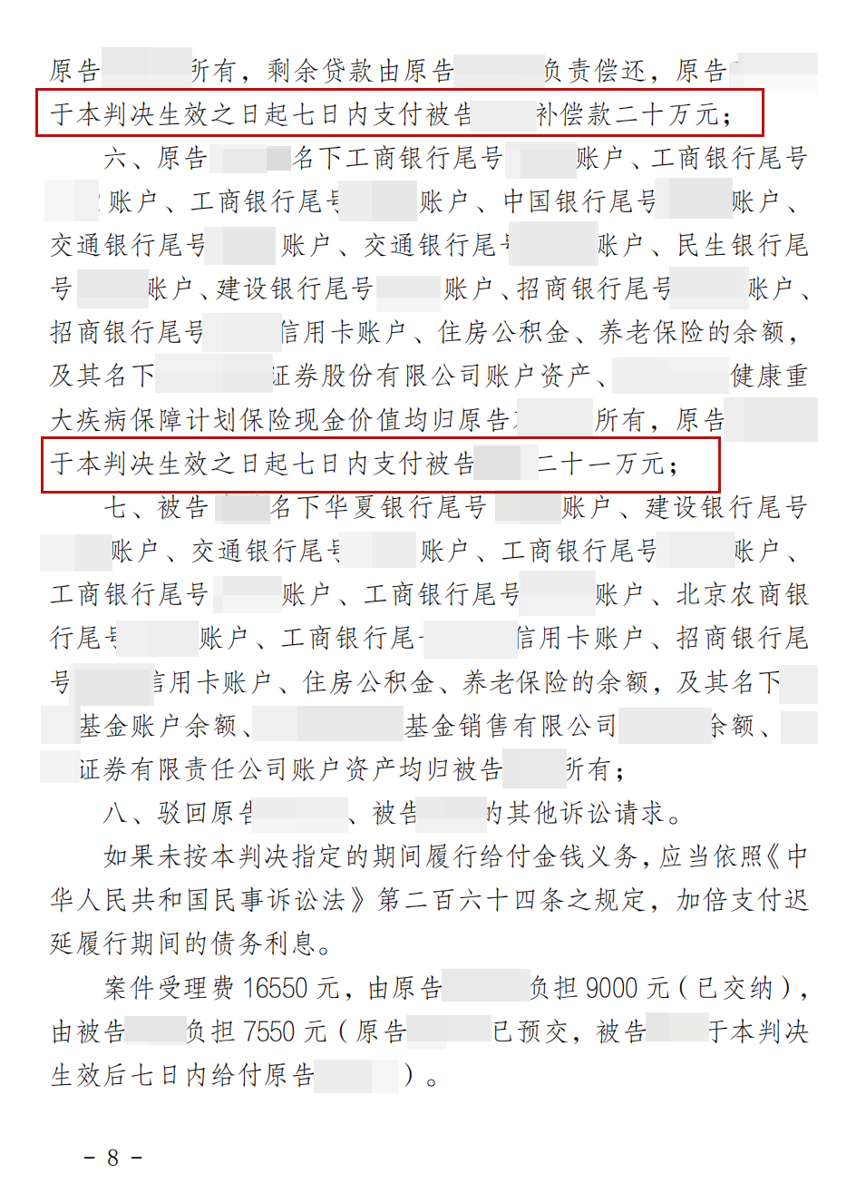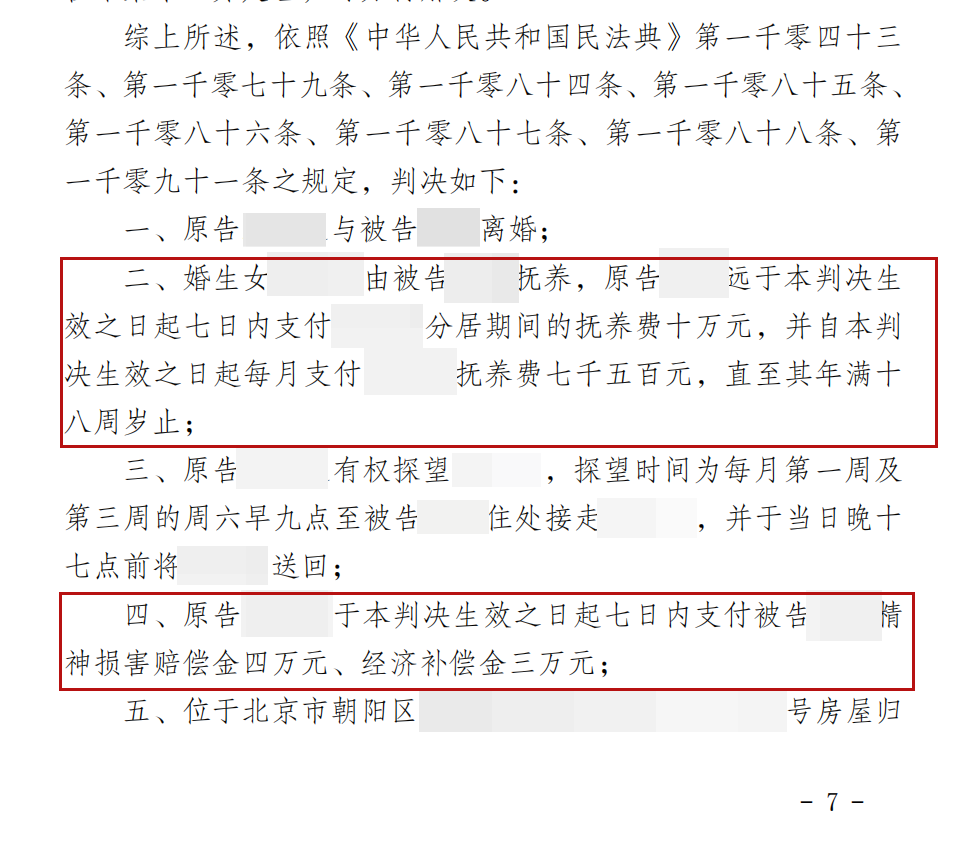 最终一审法院采纳了元甲律师的观点,不但没有让张先生分得李女士婚前购得的个人房产,还让男方向李女士支付41万元财产折价款;李女士获得孩子抚养权,对方每月支付7500元的抚养费,同时支付分居期间的抚养费10万元;法院还支持了精神损害赔偿金4万元、经济补偿金3万元。
