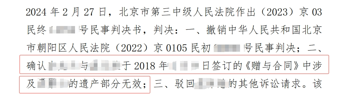2、老人去世,其配偶私自将房产赠与子女之一,历经一审二审,确认赠与合同部分无效;
