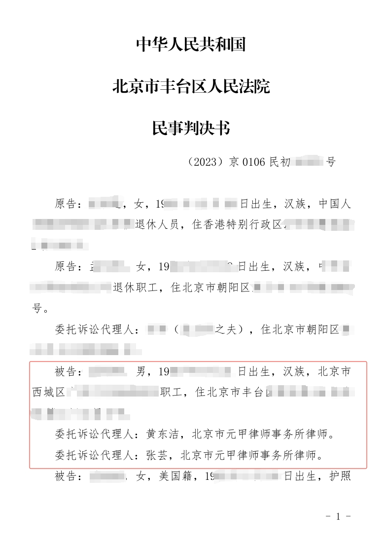 案例来源:北京市元甲律师事务所,以上为元甲律所办理过的真实案例,为确保个人和商业隐私,文中所有人物的名字均使用化名。