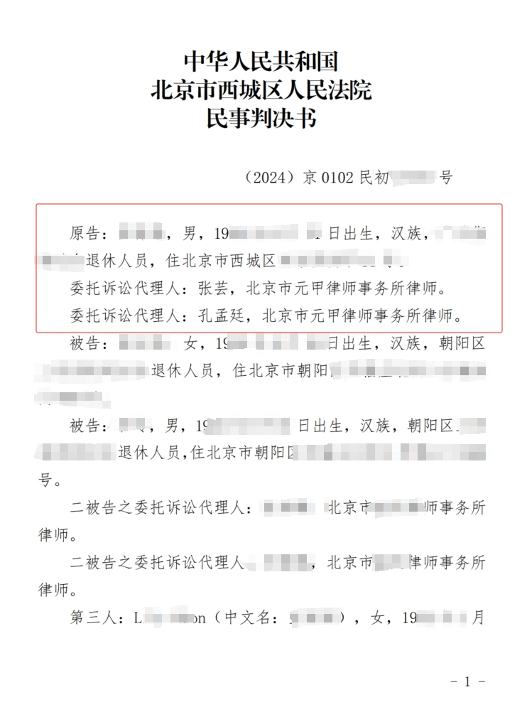 在2020年3月,元甲律所婚姻家事律师作为孟先生代理人,以确认赠与合同无效为由起诉,第一次起诉时因其中两个继承人分别在美国和香港,导致公告送达时间过长等问题,在诸多因素的影响下,孟先生决定先撤诉后再起诉。