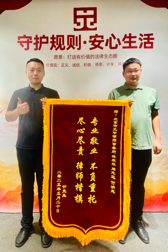 2025年5月,元甲律师协助计先生与对方保险公司达成和解协议,对方保险公司同意一次性赔付各项费用共计近25万元!从委托到圆满和解,仅用时不到3个月!计先生对此办理结果非常满意,特送来锦旗一面以表感谢,锦旗上刺字“专业敬业 不负重托 尽心尽责 律师楷模”!