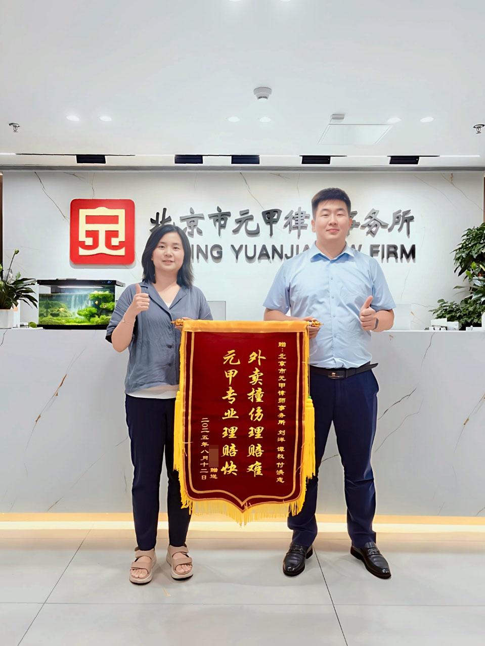 结案后,她特意为元甲团队送来一面锦旗,感谢我们“专业高效、尽心尽责”。