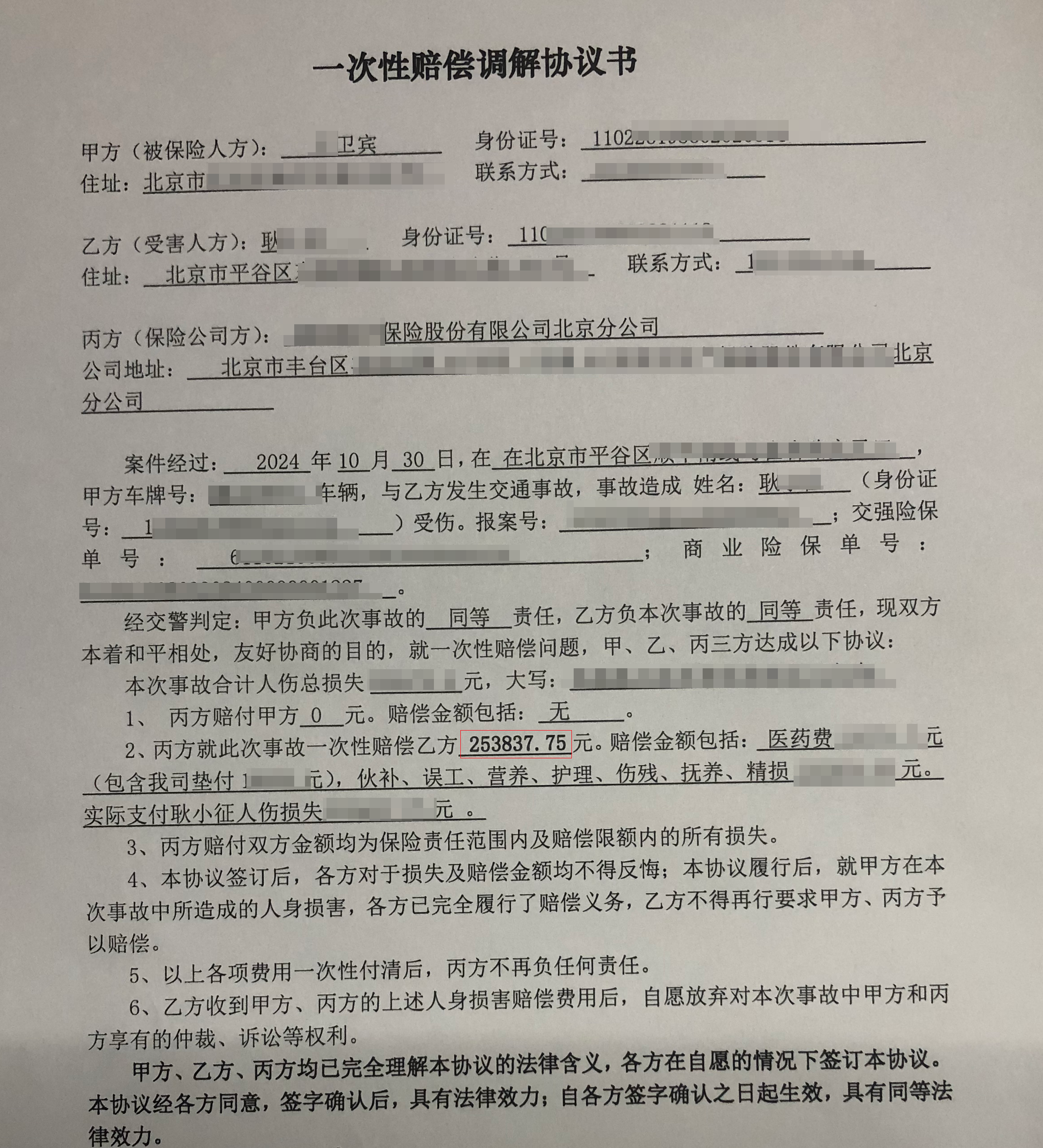 对方起初仍试图以“同责只赔一半”为由压低金额,但元甲律师步步为营:出具鉴定报告、释明法律规定、出示工资流水与医疗票据……最终,在一轮轮沟通和协调下,对方和保险公司终于同意坐下来真正“谈和解”。