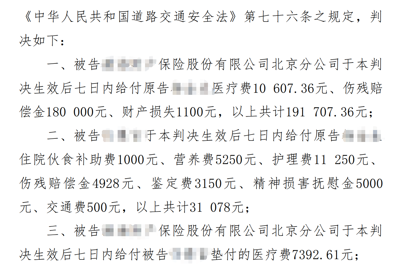 庭审中,保险公司声称“护理费每天只赔120元”,元甲律师当即反驳:“根据北京地区司法实践,150元/天才是合理标准!”同时,针对营养期、护理期天数,律师结合鉴定报告和病历,逐一举证延长计算周期,最终法院支持营养费5250元、护理费11250元,远超保险公司最初报价。最终帮助杨先生争取到除了保险意外的各项赔偿超过3万元。