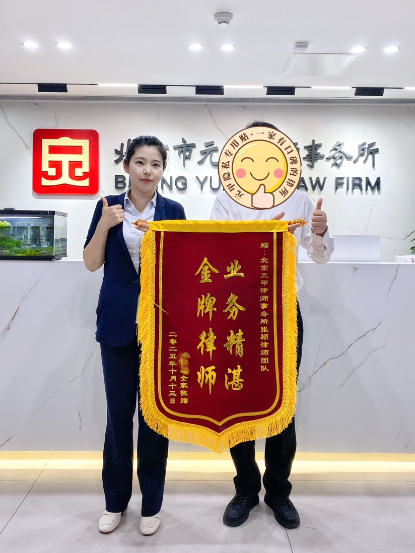 结案后不久,张先生特意定制了一面锦旗,亲自送到元甲律所,以表达对元甲律师专业能力和高效服务的认可。