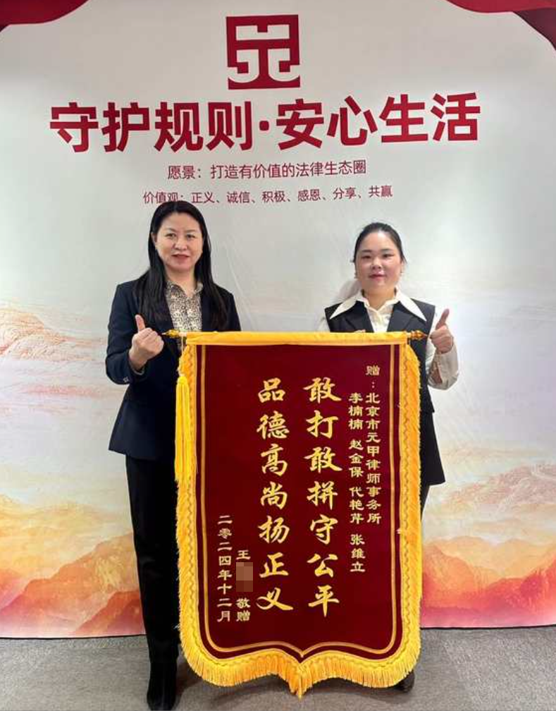 从11万到84万,同一个案子不同的人处理结果大不相同!王先生对元甲律师争取到的结果非常满意,特送来锦旗一面:敢打敢拼守公平、品德高尚扬正义!