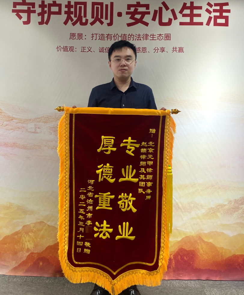 李先生对此结果非常满意,特送来锦旗一面:“专业敬业 厚德重法”表达对元甲律所的感谢!