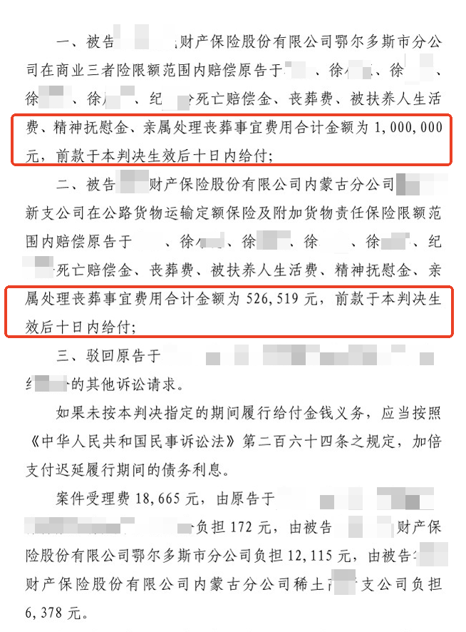 2024年9月,法院判决支持原告全部核心诉请:按照天津市标准,对方车辆保险公司在商业三者险范围内赔偿100万元;徐先生驾驶车辆的保险公司在公路货物运输定额保险范围内赔偿526519元。总额超过152万元的赔偿!