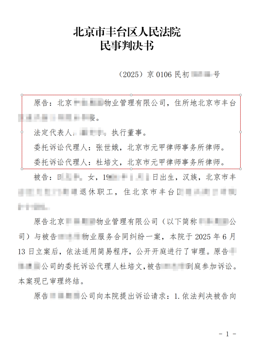 案件在丰台法院成功立案后,元甲律师积极与法官沟通开庭时间,力求快速解决这一困扰物业公司多年的难题。