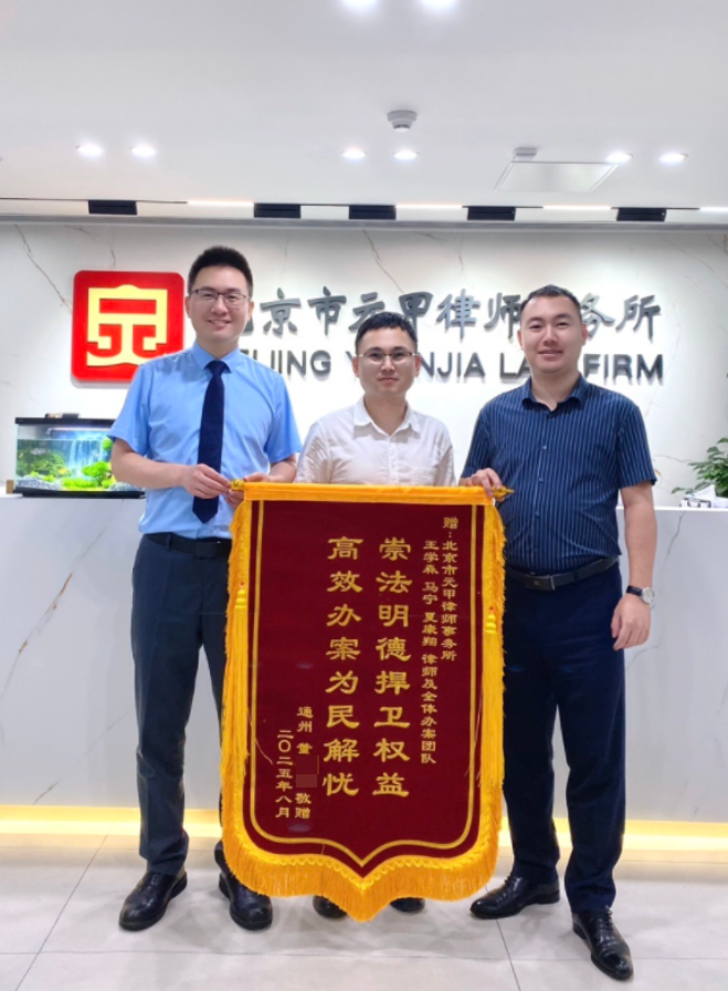 这个结果远超董先生预期,他特别送来锦旗表示对元甲律师的感谢: