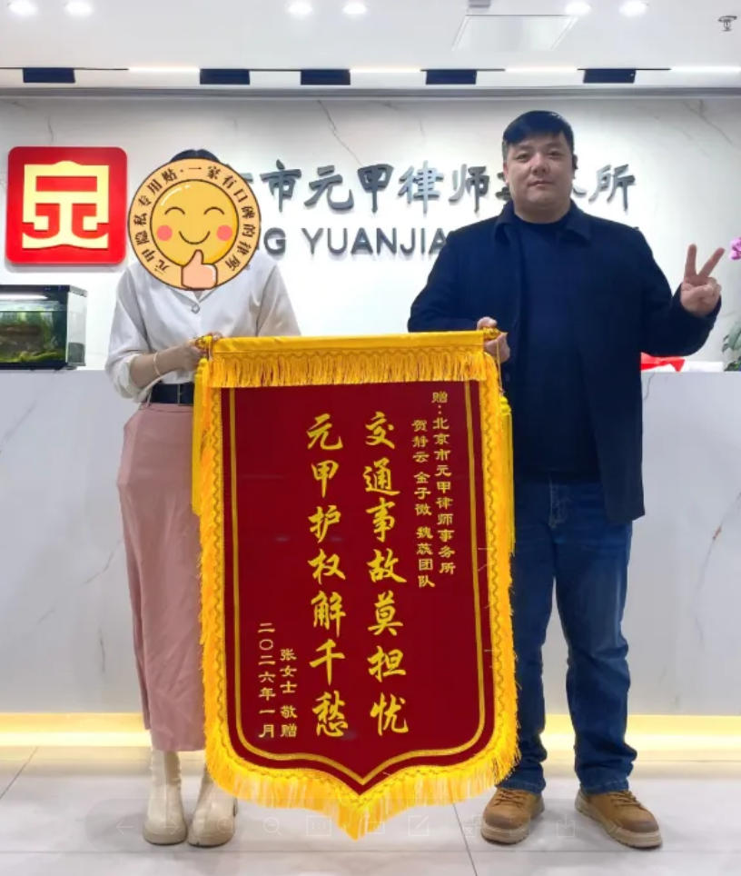 案件办结以后,张老师特为元甲律师送来锦旗一面以示感谢!