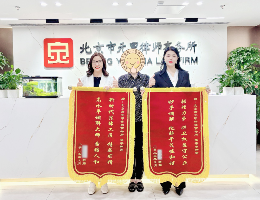 从委托到拿到调解书,元甲律师仅用3个多月,便实现了符女士“快速离婚”的核心愿望。不仅助她彻底走出婚姻阴霾,也为她后续的治疗与生活奠定了坚实保障。为此,符女士特意赠送两面锦旗,向元甲律师团队表达由衷的感谢!