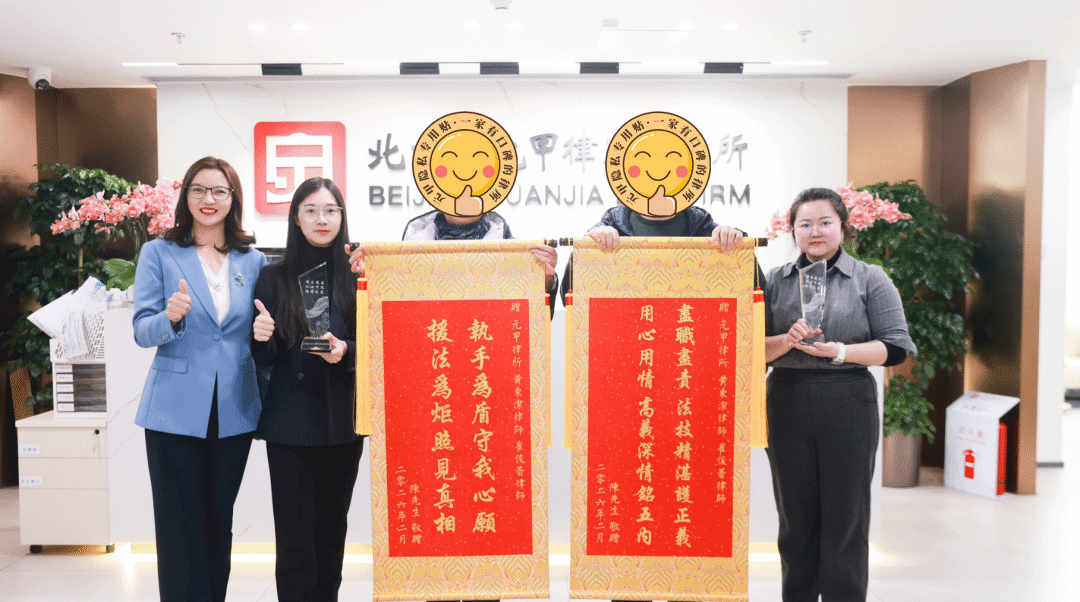 客户对元甲律师的办案结果非常满意,特送来卷轴和奖杯以示对元甲办案律师的感谢!