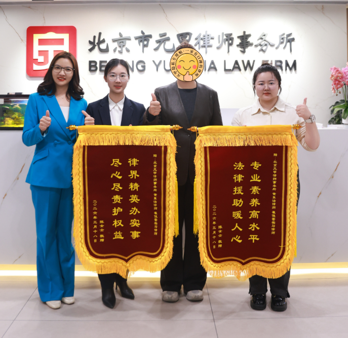 在核心房产分割与精神损害赔偿上,元甲律师成功为当事人争取到了最大化的权益!陈女士对此办案结果非常满意,特为元甲律师送来2面锦旗以示对元甲律所的感谢!