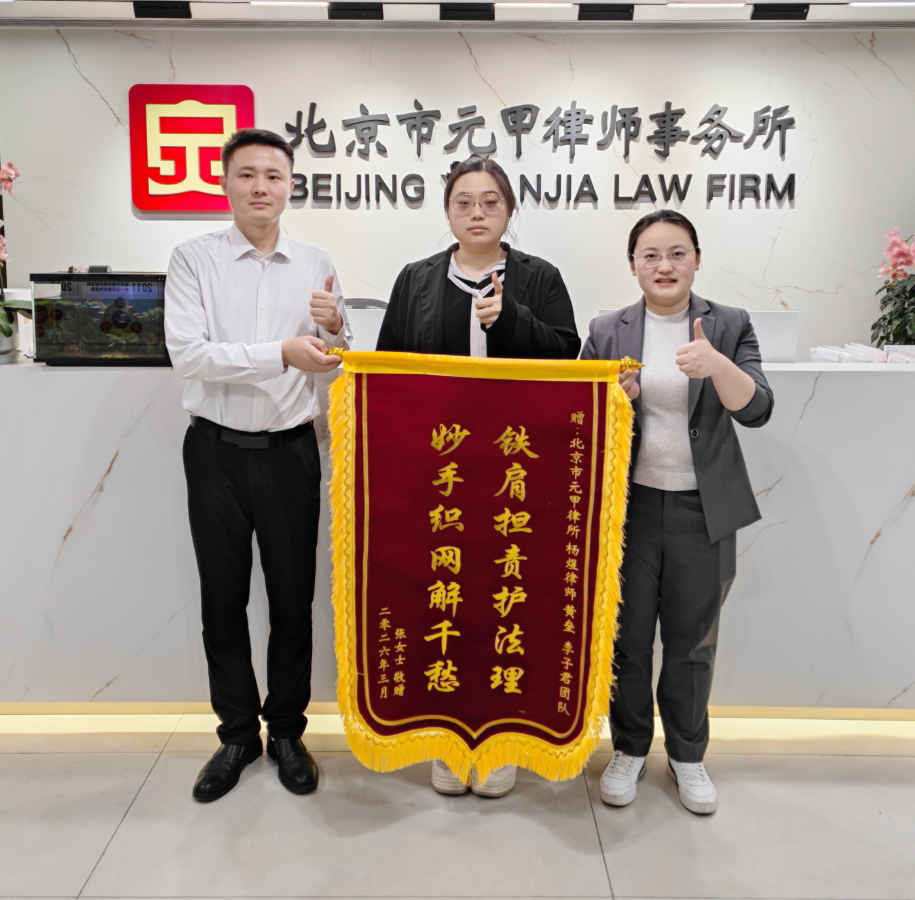 当46万余元的赔偿款顺利到账时,张女士激动不已。她特意制作了一面锦旗寄送给元甲律所办案团队,以表达自己最诚挚的感谢。这面锦旗,不仅是对元甲专业能力的肯定,更是对元甲“为当事人争取最大权益”这一服务宗旨的最好诠释。