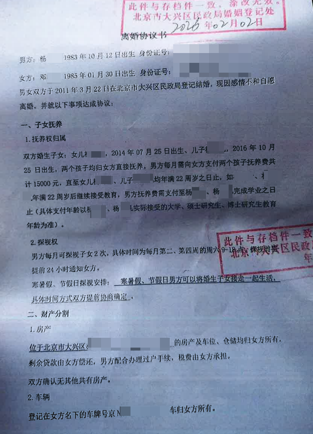在元甲律师的强力助攻下,双方签署了具有法律强制力的离婚协议:
