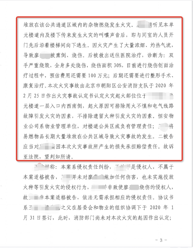 物业公司辩称:已在楼道中张贴了家居消防提示,提示了遇到火灾如何处置及如何逃生,尽到了服务管理责任及义务。