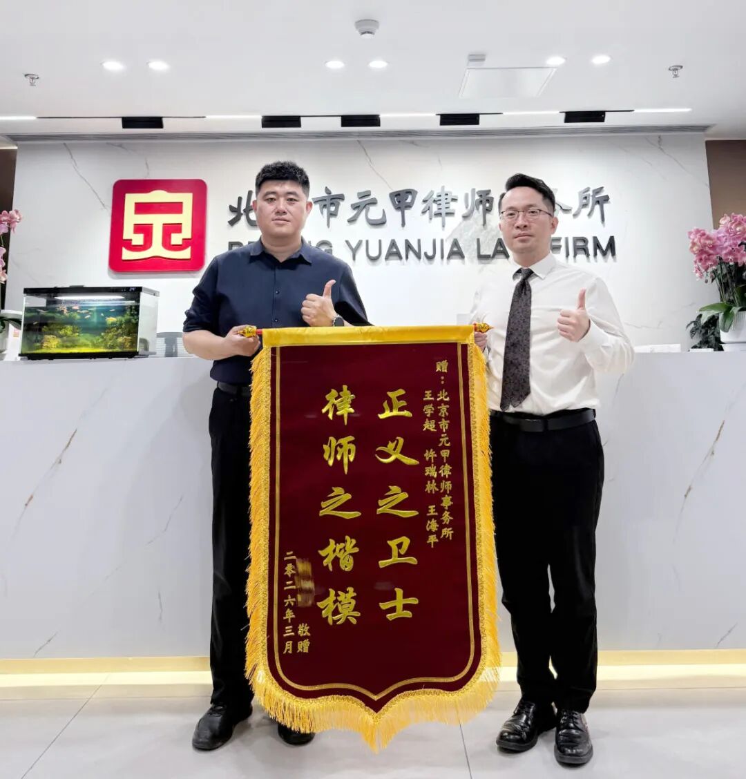 案件结束后,家属特意为元甲律师事务所送来锦旗,表达对律师团队最诚挚的感谢。