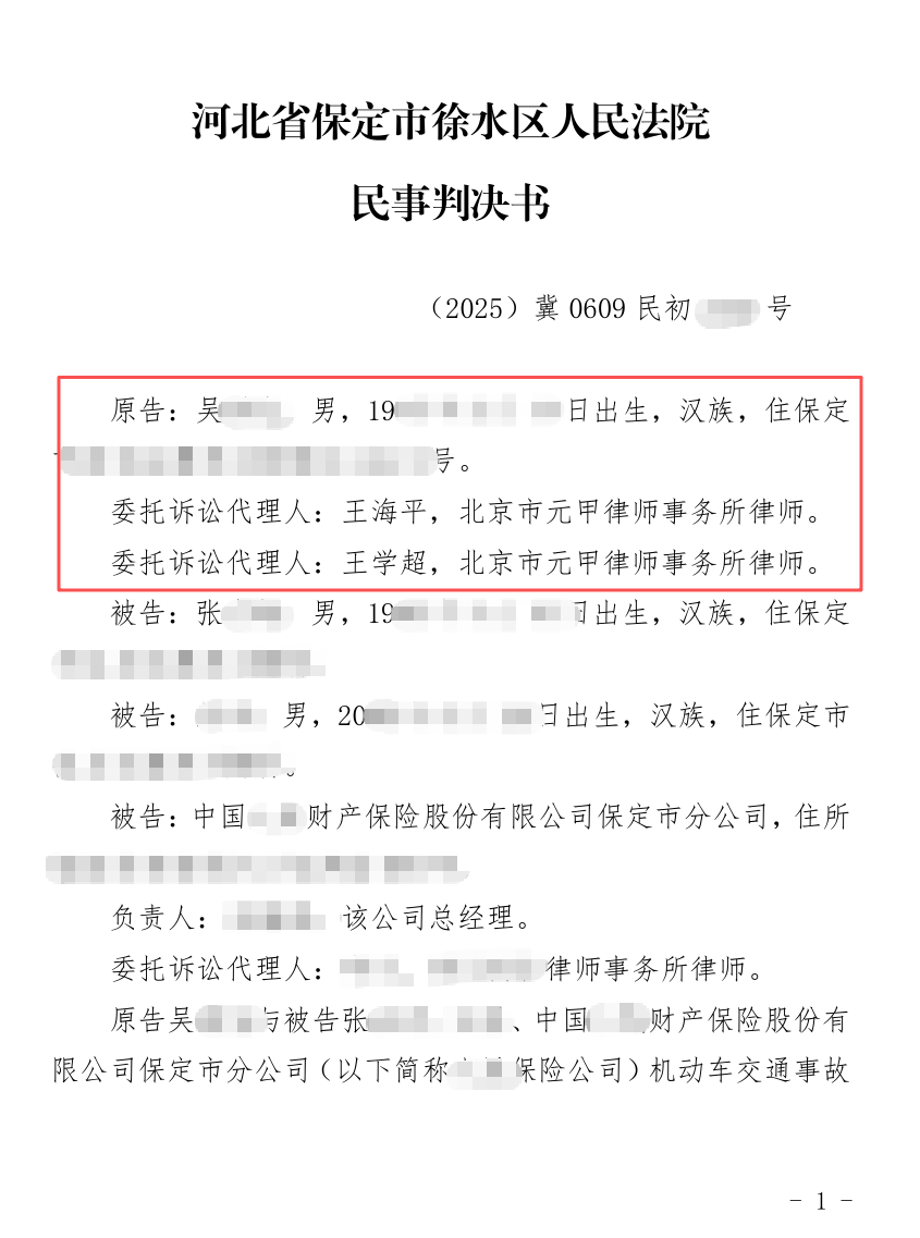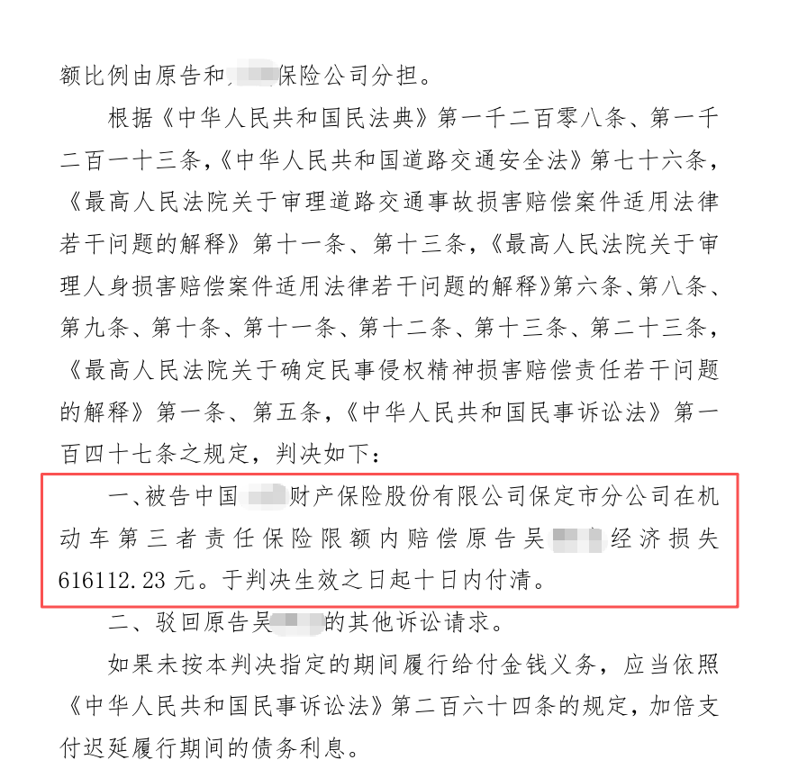 法院判决,再添62万:最终,法院采纳了元甲律师的主要代理意见,判决商业险保险公司赔偿吴先生经济损失合计62万元。
