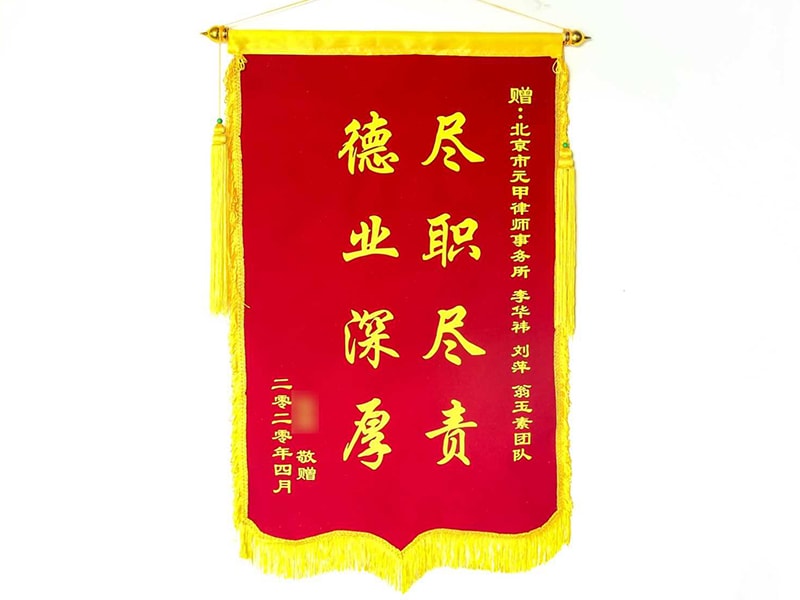 张先生及其家人对元甲律师团队非常感谢,特意送来了锦旗和奖杯。