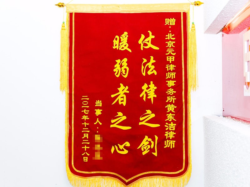 2018年1月4日,收到委托人陈女士丈夫送来的1024面锦旗。