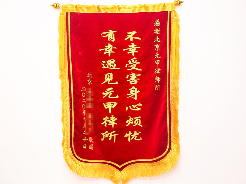 2020年9月29日,收到委托人张女士送来的第3107面锦旗。