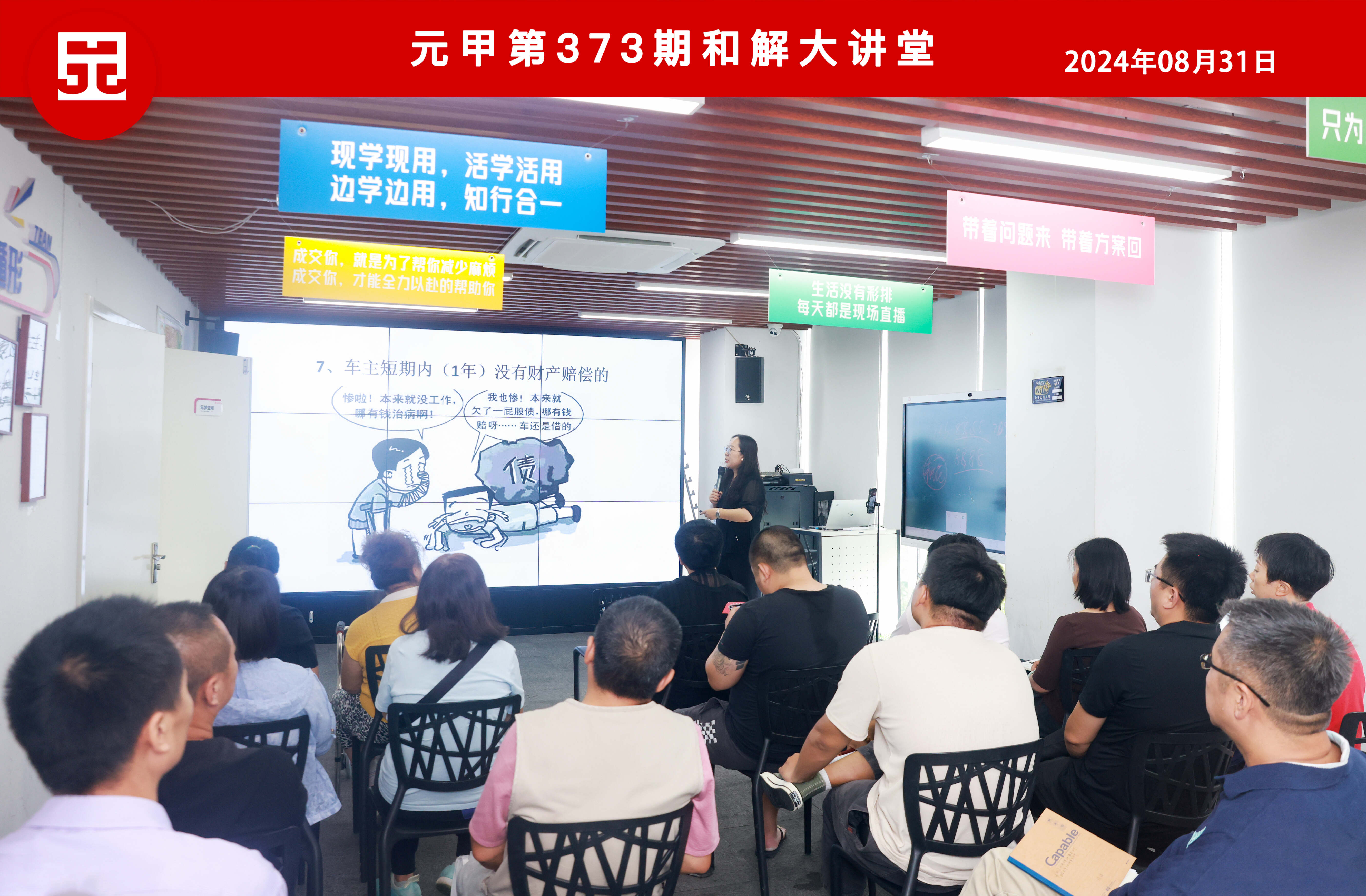2024年8月31日,元甲律所开展了第373期《和解大讲堂》讲座活动,交通部负责人王晓凤总监作为本期《和解大讲堂》的主讲人,利用一个多小时的时间,为大家详细讲解了遇到交通事故纠纷后与对方司机谈和解的多个关键性问题!
