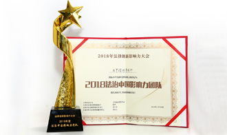 元甲律所在上海市法学会、微博、支付宝和企业服务云联合主办的首届“2018年度法律创新影响力大会”荣获“2018年度法治中国影响力团队”奖。