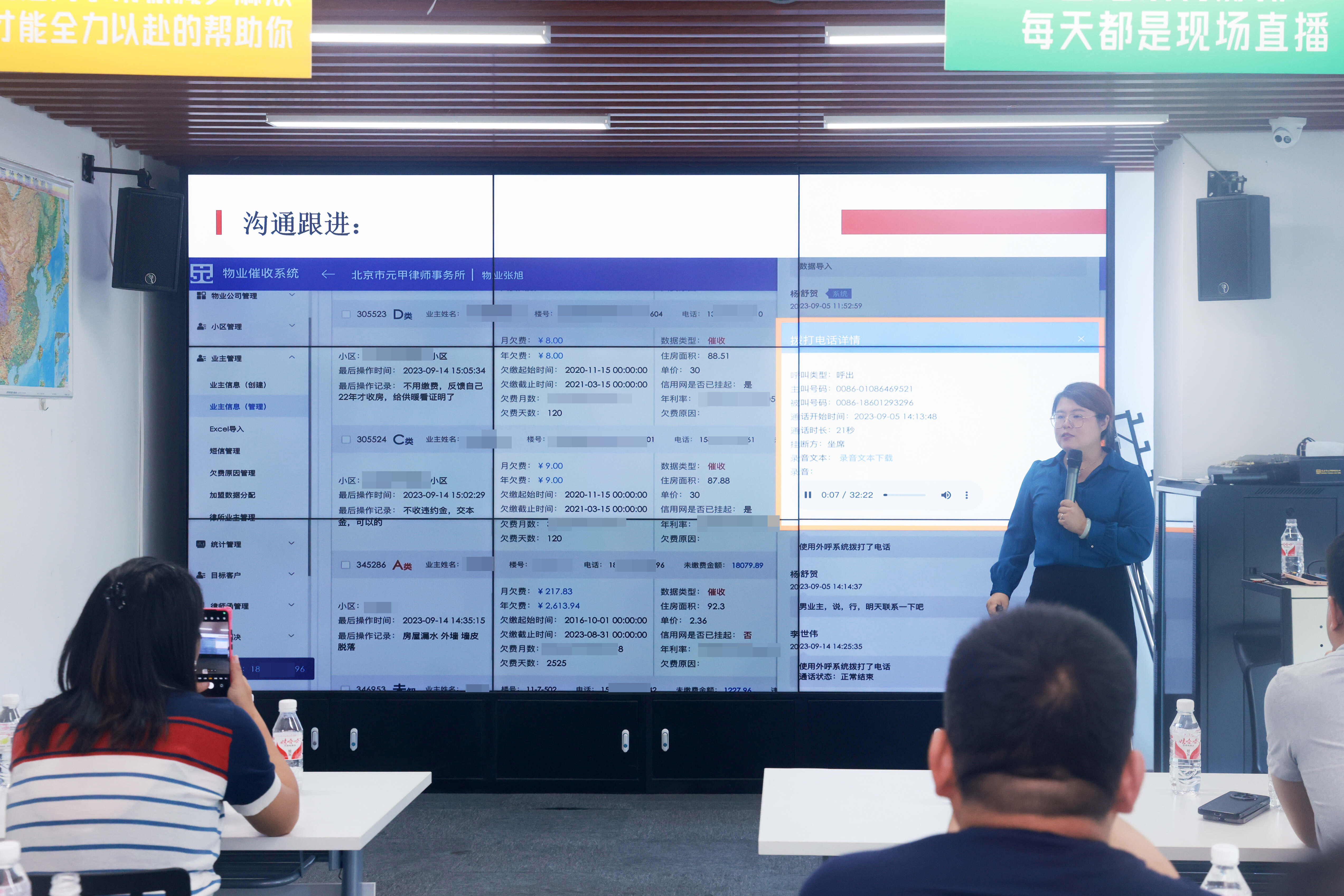 张旭律师重点介绍了元甲律所自主研发的物业智慧管理系统,该系统集物业管理、证据生成、催缴通知、数据分析等功能,通过技术手段优化物业管理工作流程,提高办公效率,实现物业轻松管理的目标。
