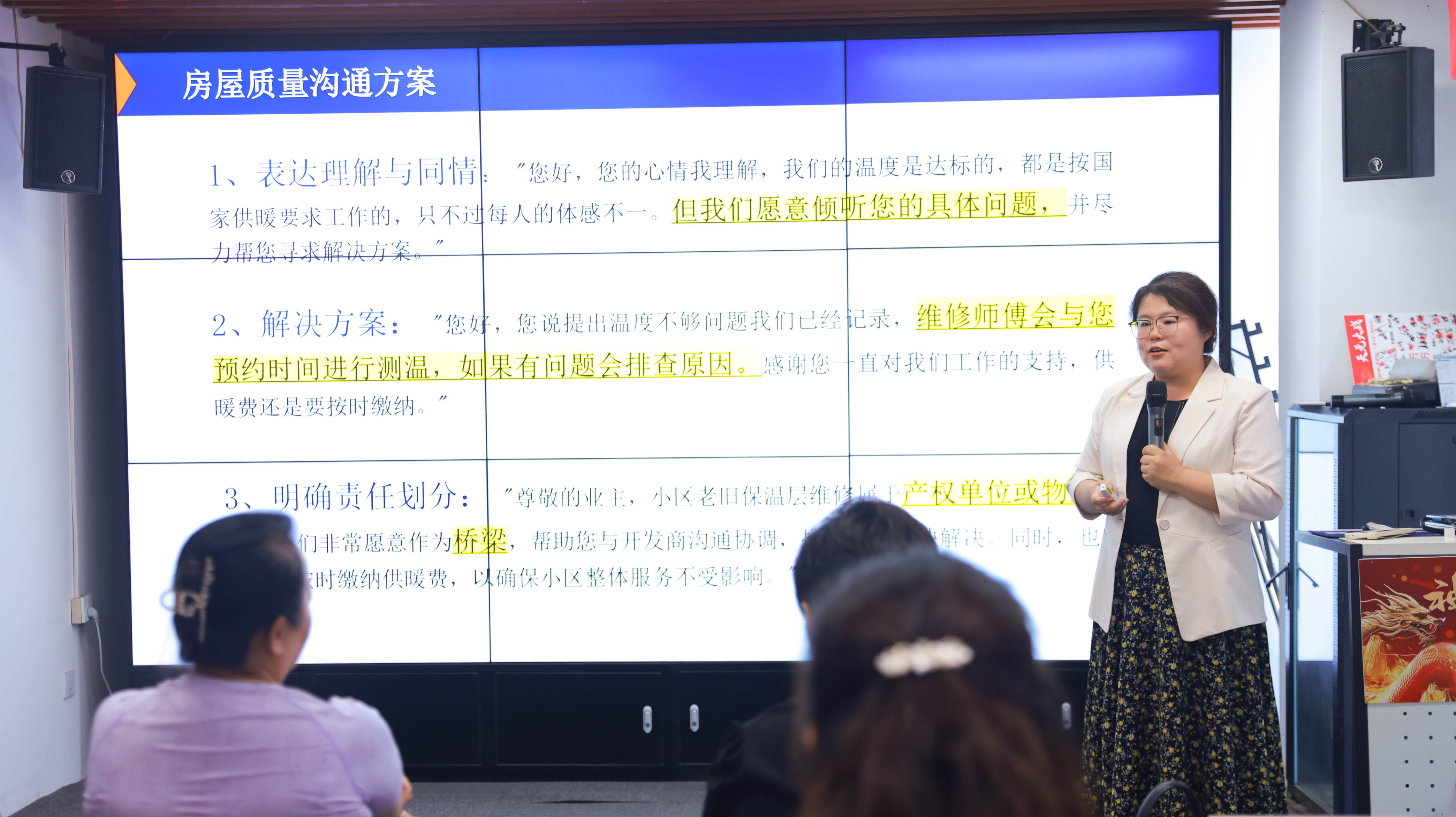 讲座初始,物业部主任律师张旭律师,在讲座中深入浅出地解析了业主不缴费的100种理由、和解方案的逻辑、7种高效和解方法、专业回答、赞美话术等。