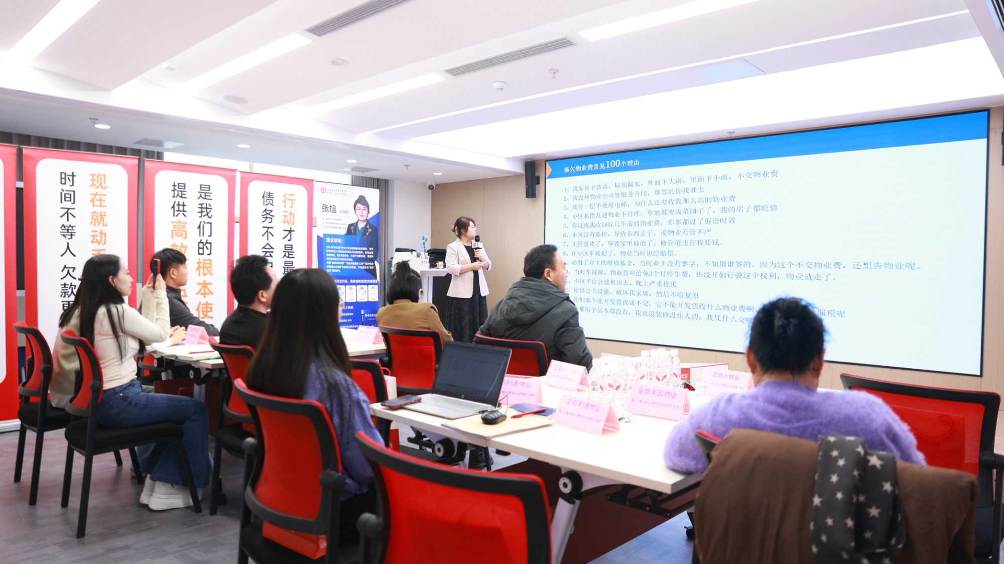 此外,针对“房屋空置未享受服务”“公共设施维修不到位”“未签订书面合同”等高频拒交理由,讲座提供了成熟的话术逻辑与法律应对要点,帮助物业人员做到有理有据、规范回应,将沟通导向解决问题的轨道。
