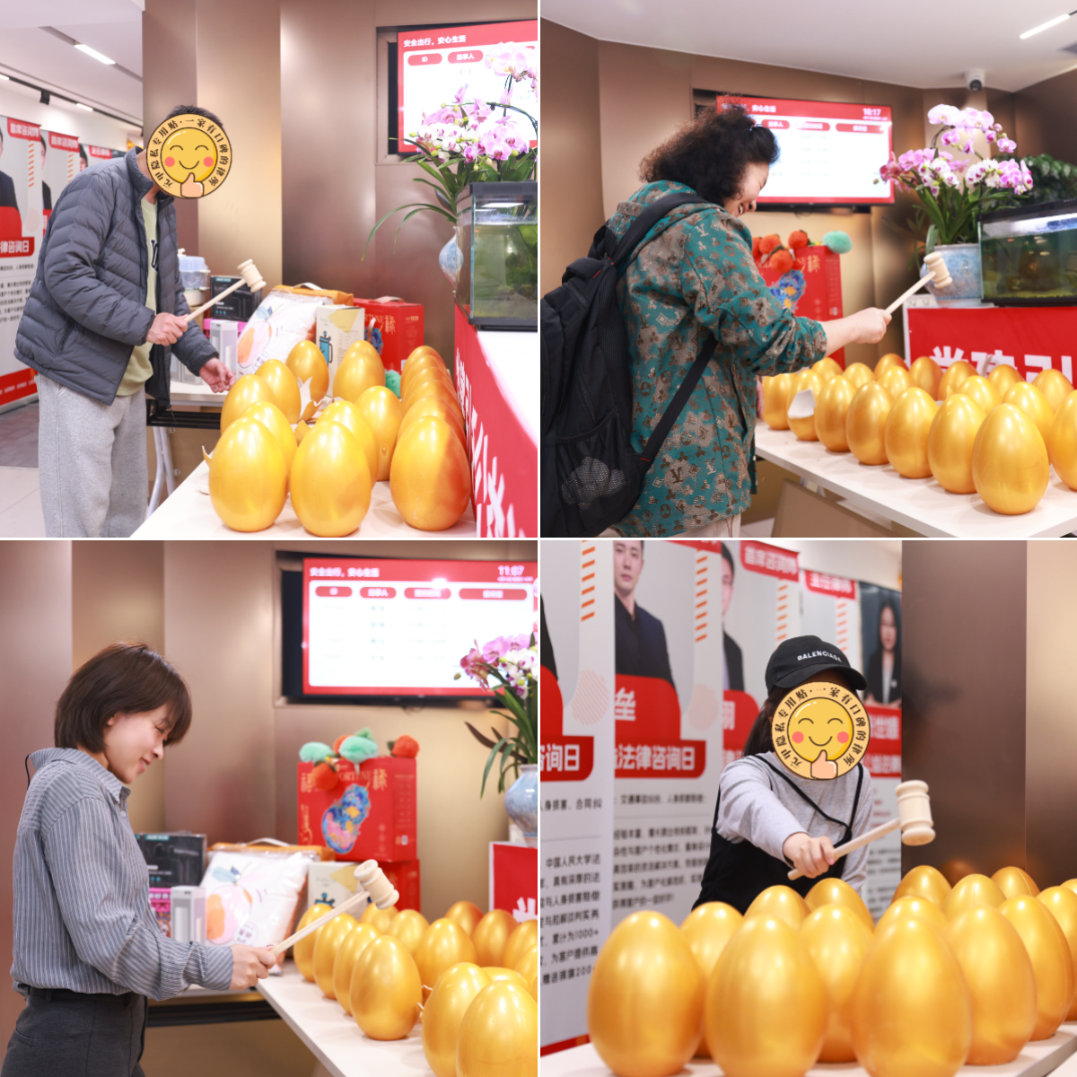 从河北赶来的李女士砸开金蛋后笑着说:“本来是揣着一肚子愁来的,没想到律师给讲得明明白白,还白拿了礼物,心里一下子亮堂多了。”
