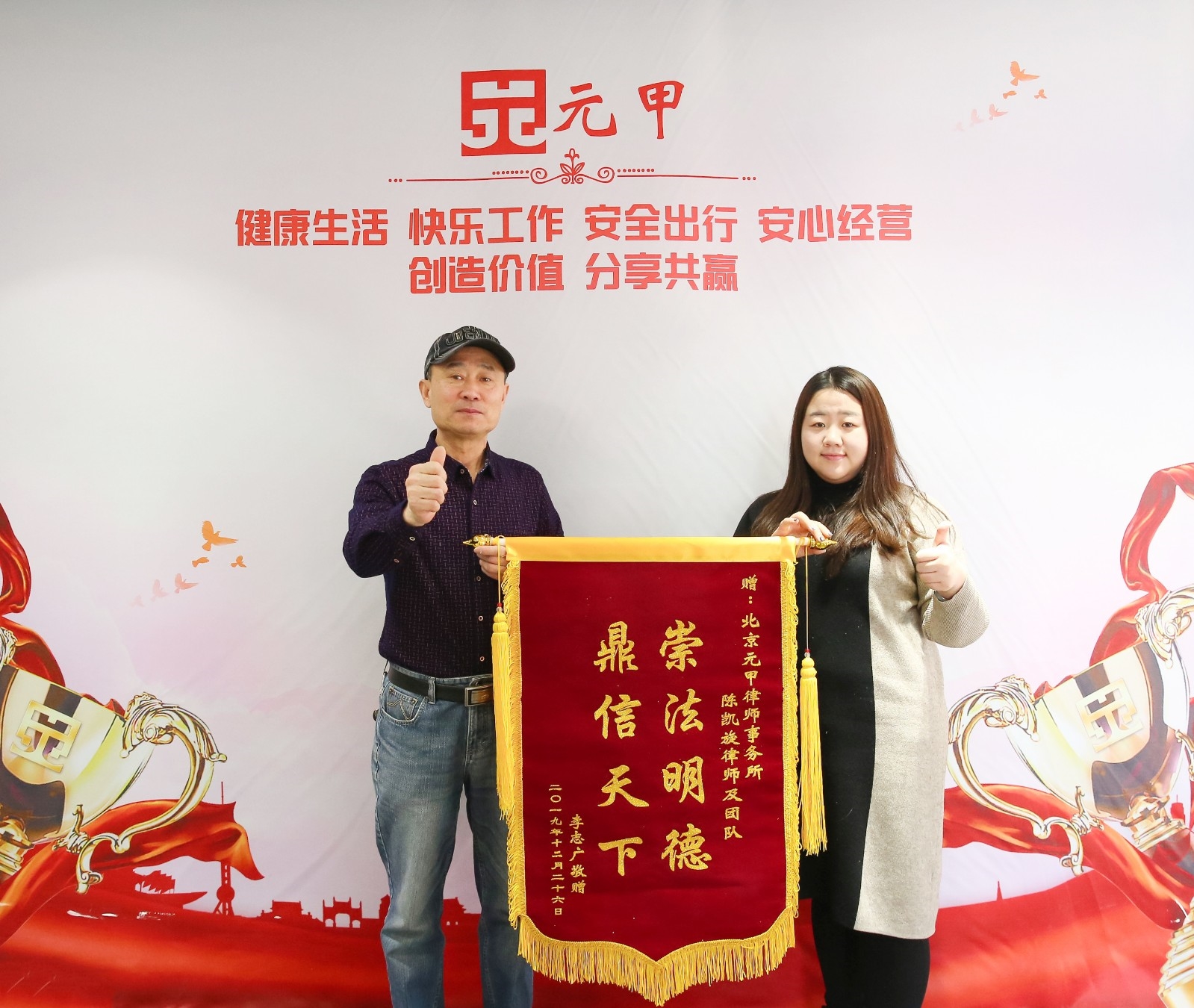在元甲律师团队和受害人的共同努力下,司机配合理赔,李先生获得18万余元赔偿,特送来锦旗一面以表感谢。