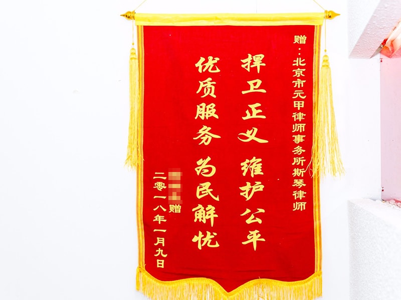 2018年1月21日,元甲收到委托人杨先生送来的第1044面锦旗。