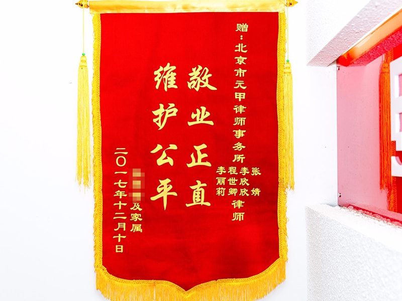 元甲律师帮助当事人维权成功,元甲律师团队收到了当事人送来的大红锦旗!