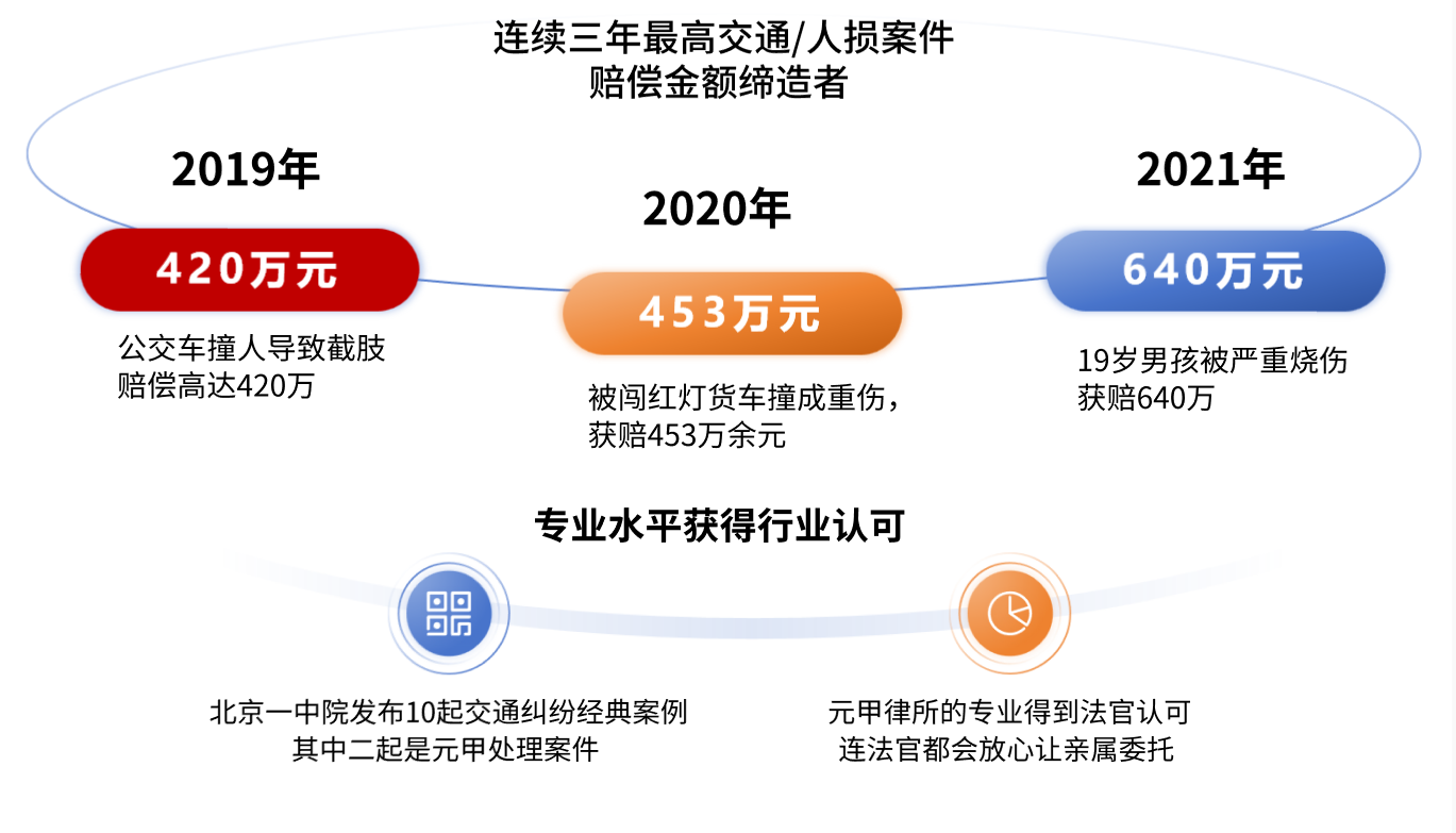 元甲交通团队是北京交通事故著名的律师团队之一,20年实战经验,善于化繁为简,用和解与诉讼策略帮客户获得更高赔偿金额,得到客户一致认可!